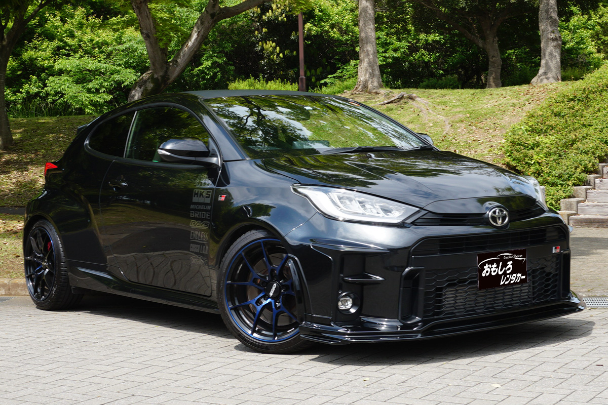 6速マニュアルの272馬力 4WD。3気筒1600CCの4WD、軽量ボディで良く曲がる異次元の4WD体験をお約束します。 土屋圭市×おもしろレンタカーコラボの土屋圭市プロデュースGRヤリスとなります。 こちらKWのプレミアム車高調整KW V-4 Clubsport ( 旧Clubsport 3Way ) 定価708,400円をKW様の協力のもと、 インストールしました。 減衰調整範囲は、伸び側が16段、縮み側がロースピード13段/ハイスピード14段車高はKWのステッカーが貼られているものとなります。純正より3センチ程ダウンとなります。また、前後機械式LSD装着となり、ハンドルに舵角を与えた低速走行では前後デフよりチャタリング音が出ますが、これは正常な音ですのでご理解ください。 フロントは CUSCO RS 機械式LSD 1C7 F リヤは CUSCO RS 機械式LSD 1C8 L15 をCUSCO様の協力により装着しております。なをマフラーはHKS様のご協力による となります。 主要装備品 ●HKSマフラー Super Turbo Muffler ●アルミホイール RAYS G025 ●機械式LSD フロント 1WAY CUSCO RS 機械式LSD 1C7 F リヤ 1.5WAY CUSCO RS 機械式LSD 1C8 L15 ●BRIDE ZETA Ⅳ職人モデル ●KW車高調整式サスペンションキット V-4 Clubsport ( 旧Clubsport 3Way ) 定価708,400円 ●エンドレス ブレーキパッドCC-Rg(前後とも) ●タイヤ ミシュランパイロットスポーツ4 土屋圭市さんとの企画において使われている車両となります。 https://www.youtube.com/watch?v=CwKMhBP8Fjk なを、マニュアル免許取得後3年以上経過 かつ、23歳以上いずれの条件も満たしておられる必要があります。条件を満たさない方へは絶対にお貸しできませんのでご注意願います。また、非常にハイパワーなお車となります。マニュアル車に慣れていない方が このような車をレンタルするのは危険です。(クラッチが壊れて帰ってこれなくなります)場内での運転で不慣れと判断させていただいた場合、貸出をお断りすることがありますので、マニュアル車に慣れている方のみ、車の運転に慣れておられる方のみ(幅が1800mmと広く、後方視界が悪い)の貸出をお願いします。 また、18インチの低扁平率タイヤです。荷重が掛かる状態で峠道等のキャッツアイを踏むと簡単にパンクします。(タイヤサイドウォールに穴が空きます)当たり前のことですので、車やタイヤに対しての当たり前の知識を持ち合わせた方のみの貸出をお願いいたします。 【運転者追加料金お一人あたり/¥2,200】