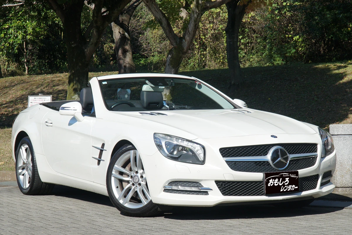 R231型メルセデスベンツSL350。 2人乗り電動メタルトップを備えた高級ラグジュアリーオープンスポーツカー。 フルアルミ製のボディシェルが採用されたことでホワイトボディでざっと30%の軽量化が図られて、走りや燃費に貢献するとともに、ねじり剛性も20%向上させることで、このような大柄なボディにも拘らず、ワインディングでも楽しめるハンドリングを実現しています。 ぜひ優雅なラグジュアリースポーツを体験してください。 ※【追加運転者料金】 お一人あたり2,200円/24H ※【距離制限があります】 6時間300kmまで 9時間400kmまで 24時間600kmまで 以降1日あたり600kmまで ※超過分は60円/km加算となります。