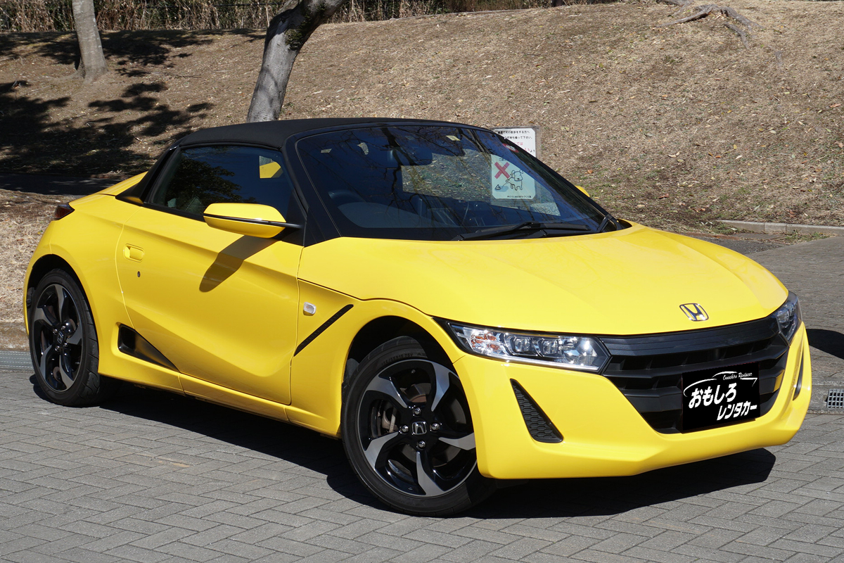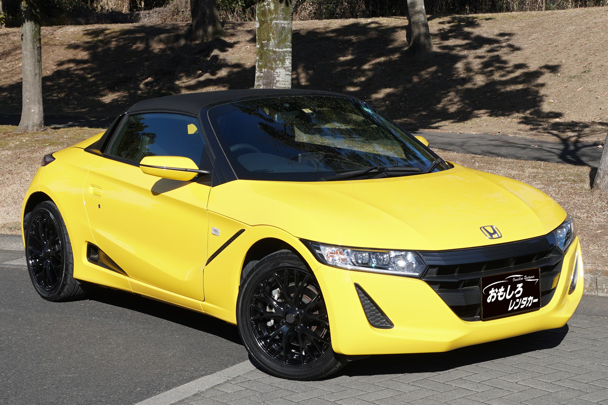発売されるや自動車ファンからの大喝采を浴びた、 ホンダの軽規格2シーターオープンスポーツカー 「S660 α(アルファ)」 鮮やかな黄色(カーニバルイエロー)にて登場! 高い旋回性能にこだわり、駆動方式にミッドシップエンジン・リアドライブ(MR)レイアウトを採用するとともに、手軽にオープンエアドラインビングを楽しめるよう、脱着式ソフトトップ「ロールトップ」を装備。 エンジンは 「S07A」型ターボエンジンをベースに、 新設計のターボチャージャーを採用した改良型を搭載。 トランスミッションは、 エンジンパワーを最大限に活用するためワイドレンジ&クロスレシオに設定した軽自動車初の6速MTを新開発。さらに、スポーツモードへ切り替えが可能な7速パドルシフト付CVTを設定し、吸・排気音、ターボチャージャー作動音、アクセルオフ時に過給圧を開放するブローオフバルブ音などに独自のサウンドチューニングを施すことにより、スポーツカーならではのエンジンサウンドを実現。 シャシーは ミッドシップエンジン・リアドライブレイアウトの採用により前後重量配分を45:55とし、慣性モーメントの最小化とトラクション性能の向上。 サスペンションは 前後ともストラット式。 また、軽自動車としては初となる電子制御システム「アジャイルハンドリングアシスト」が採用され車体の動きに応じたコントロールに「ブレーキ制御」を活用することで、コーナリング時に狙ったラインをトレースしやすく、少ないステアリング操作でスムーズな車両挙動を実現。 ボディ形状は 脱着式ソフトトップ「ロールトップ」を備えたオープンボディとし、「ロールトップ」をはずした状態でもシート背後のロールバーが残るタルガトップ風デザイン。 ボディフォルムは、絞り込んだアッパーボディと大きく張り出させたリアフェンダーにより、ワイド感とともにタイヤが地面を踏みしめる「 踏ん張り感」 を表現。 インテリアは、 ドライバーの着座姿勢やヒップポイント、アクセルやブレーキペダルの位置を最適化し、クルマとの一体感を追求。 走りに最高の価値を求めるなら、迷わずS660を選べ。